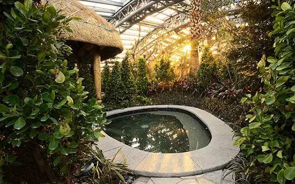 池外是层林尽染、小院初冬的世界,池内是宛如恋人相拥吐纳间呼吸的温暖。部分浴池边上还装饰有纱帘,微风吹来纱帘飘动,很有仙飘飘的感觉!